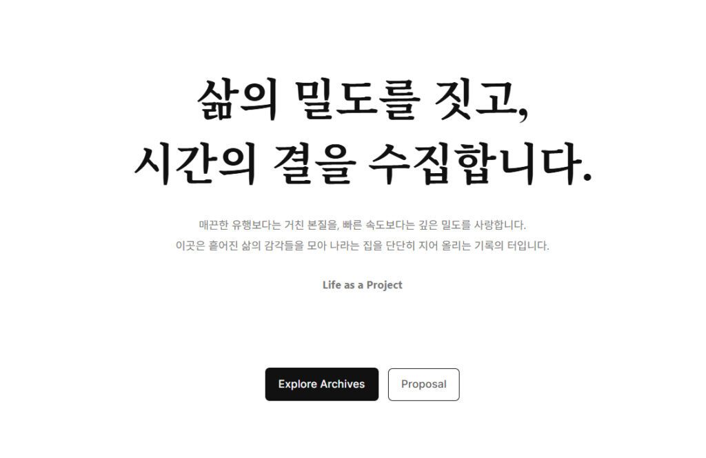 삶의 밀도를 짓고, 시간의 결을 수집합니다.